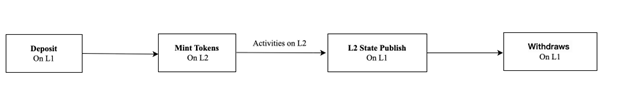Deposit (also referred to as Peg-in within the BitVM2 context): A user deposits assets by locking them on L1 non-custodially. The zkRollup sequencer detects this event, validates the finality of the deposit transaction, and updates the L2 state accordingly—typically by minting equivalent wrapped tokens on L2.