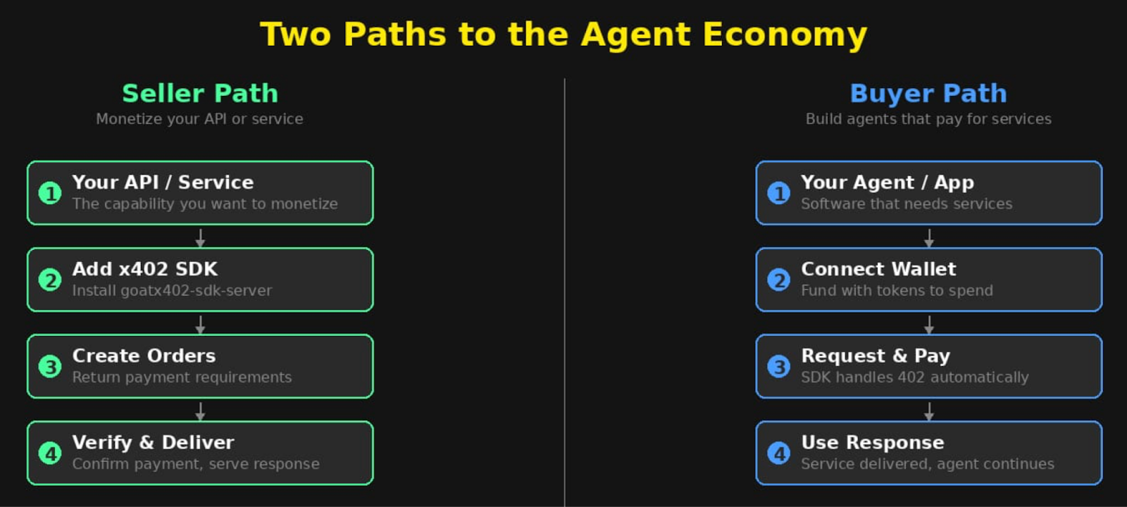 x402 and 8004 are the payment and trust layers. GOAT Network is the execution environment. The SDK is ready. What’s missing is applications - the services, marketplaces, and agent systems that will define how this economy actually works.